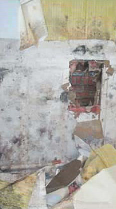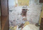 Hidden mold growth revealed behind wallpaper in an office building